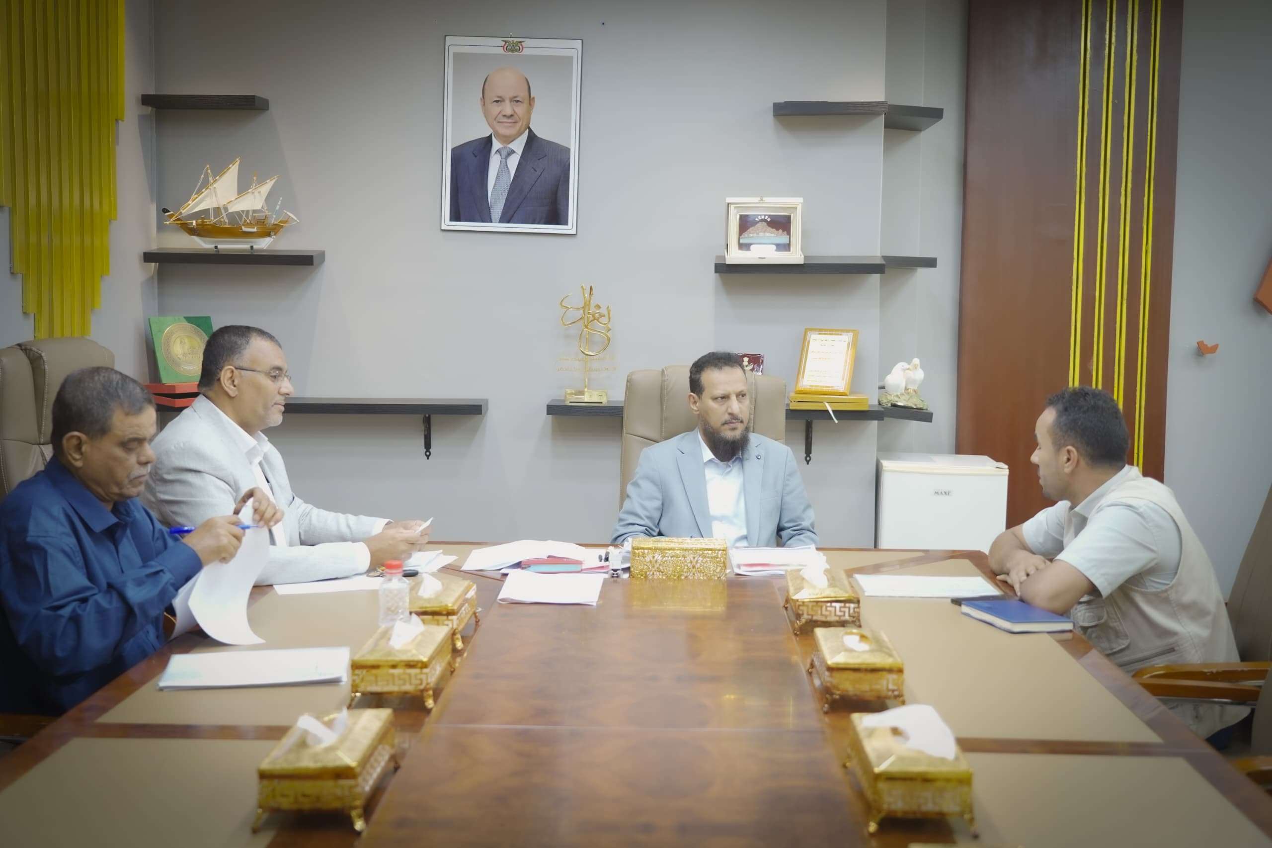 المحافظ عبدالرحمن شيخ يناقش مع ممثل جمعية العون المباشر الكويتية سير المشاريع التي تنفذها الجمعية في العاصمة عدن