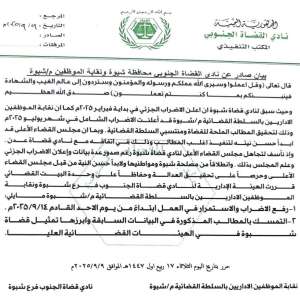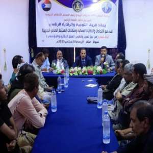 فريق التوجيه والرقابة الرئاسي يعقد لقاءً موسعًا مع الاتحادات والنقابات العمالية ومنظمات المجتمع المدني بشبوة