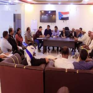 فريق التوجيه والرقابة الرئاسي يعقد اجتماعاً موسعاً مع مدراء إدارات الهيئة التنفيذية ورؤساء هيئات المجلس الانتقالي بمديريات شبوة