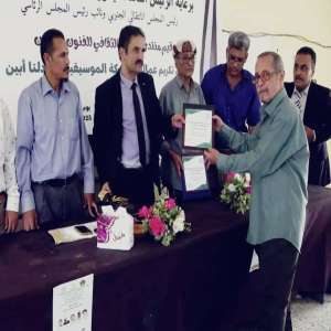فريق التوجيه والرقابة الرئاسي يشارك في حفل تكريم منتدى الاتحاد الثقافي بأبين لعمالقة الحركة الموسيقية