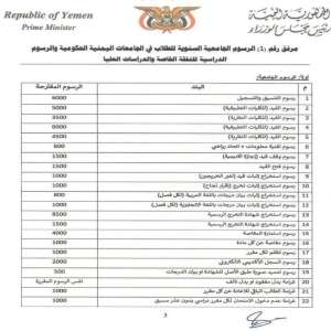 صدور قرار رئيس مجلس الوزراء بتوحيد وتحديد الرسوم الجامعية في الجامعات الحكومية ورسوم النفقة الخاصة والدراسات العليا