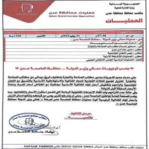 محافظ العاصمة عدن يوجّه بحملة رقابية لضبط أسعار المواد الغذائية الأساسية