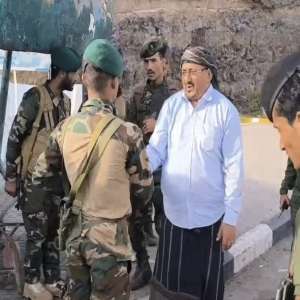 قائد اللواء الأول دعم وإسناد يعايد المرابطين بأبين ويشيد بمستوى الجاهزية واليقظة