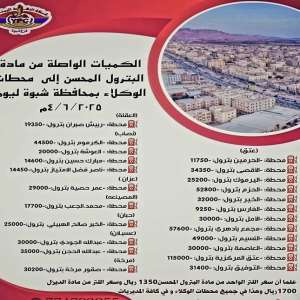 شركة النفط فرع شبوة تعلن عن تغطية السوق بالمشتقات النفطية وتحذر من التلاعب.