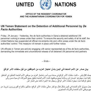 الأمم المتحدة تعلق أنشطتها في مناطق سيطرة مليشيا الحوثي بسبب احتجاز موظفيها
