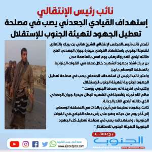نائبالرئيس: إستهداف القيادي الجعدني يصب في مصلحة تعطيل الجهود لتهيئة الجنوب للإستقلال