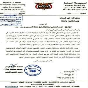محافظ عدن يبعث طلب هام لوزارة الكهرباء بشأن محطة الرئيس " وثيقة "