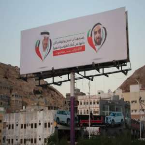الحملة الشعبية لشكر دولة الإمارات في حضرموت تشيّد لوحات عملاقة عرفان بالدور الإماراتي في تحرير الساحل