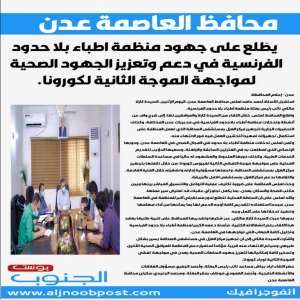 محافظ العاصمة عدن يطّلع على جهود منظمة اطباء بلا حدود الفرنسية في دعم وتعزيز الجهود الصحية لمواجهة الموجة الثانية لكورونا.