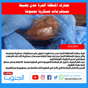 جمارك المنطقة الحرة عدن يضبط مستلزمات عسكرية ممنوعة