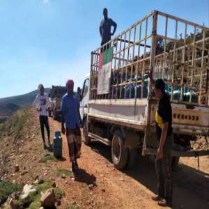 خليفة الانسانية تزود مركز مومي بأرخبيل سقطرى بشاحنات محملة بأسطوانات الغاز المنزلي