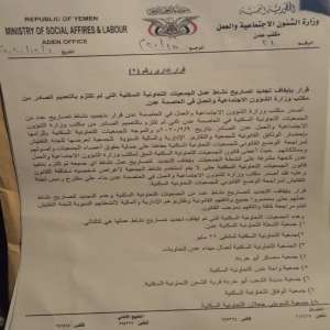 مكتب الشؤون الاجتماعية بعدن يصدر إشعار هام لعدد من المؤسسات والجمعيات
