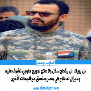 بن بريك :لن يقطع سكن ولا علاج لجريح جنوبي نشرف عليه و لايزال له علاج في مصر