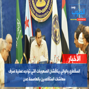 السقطري والوالي يُناقشان الصعوبات التي تواجه عملية صرف معاشات المتقاعدين بالعاصمة عدن