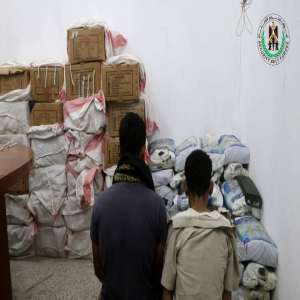الحملة الأمنية لقوات العمالقة الجنوبية تضبط قارب تهريب يحمل 600 الف حبة كبتاجون مخدر، قرب باب المندب