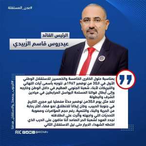 بيان صادر عن الرئيس الزبيدي بمناسبة ذكرى الاستقلال 30 نوفمبر