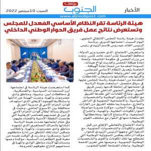 هيئة الرئاسة تقر النظام الأساسي المُعدل للمجلس وتستعرض نتائج عمل فريق الحوار الوطني الداخلي