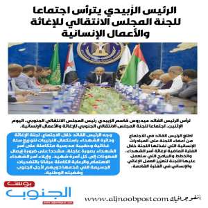 انفوجرافيك.. الرئيس الزُبيدي يترأس اجتماعا للجنة المجلس الانتقالي للإغاثة والأعمال الإنسانية