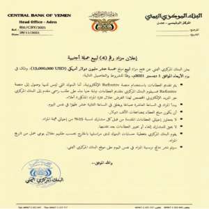 البنك المركزي يعرض مليون دولار في مزاد علني للبنوك التجاري