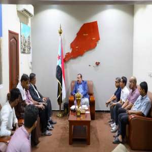 اللواء بن بريك يستقبل بعثة فريق كرة السلة بنادي شعب حضرموت