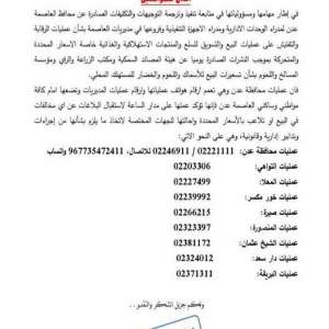 عمليات محافظة عدن تنشر أرقاماً لاستقبال بلاغات المواطنين حول أي مخالفات للأسعار