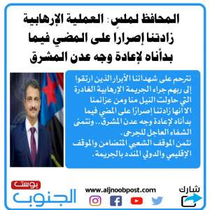 المحافظ لملس: العملية الإرهابية زادتنا إصرارًا على المضي فيما بدأناه لإعادة وجه عدن المشرق