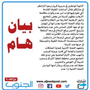 اللجنة الأمنية بعدن تصدر بيان هام بشأن احداث كريتر