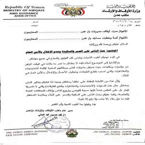 مكتب أوقاف عدن يصدر تعميم هام لخطباء المساجد