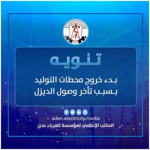 عاجل: خروج تدريجي لمحطات كهرباء عدن بسبب نفاذ الوقود