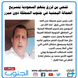 فتحي بن لزرق يتهم السعودية بتسريح العمالة اليمنية في جنوب المملكة دون مبرر