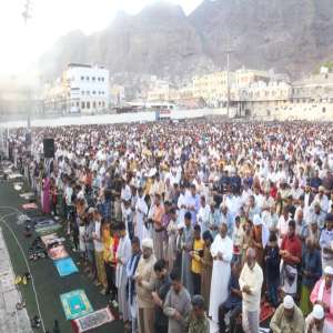 عدد من أعضاء هيئة الرئاسة والقيادات المحلية بالعاصمة عدن يؤدون صلاة عيد الفطر مع جموع المصلين بخورمكسر والمعلا