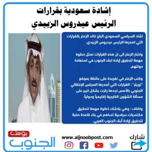 إشادة سعودية بقرارات الرئيس عيدروس الزبيدي