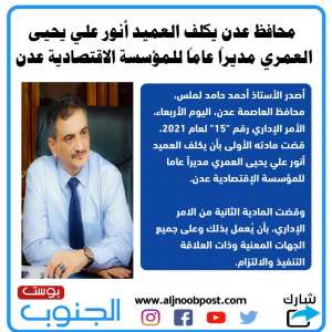 السقطري يصدر قرار بتكليف وضاح العوسجي مدير عام لإدارة المؤسسات والتعاونيات السمكية بديوان عام الوزارة