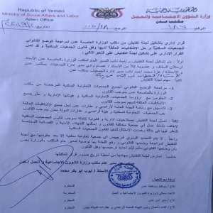 قرار وزاري بتشكيل لجنة تفتيش لمراجعة الوضع القانوني للجمعيات التعاونية السكنية وإحالة الجميعات المخالفة للقانون للجهات الامنيه المختصه لإيقاف نشاط عملها