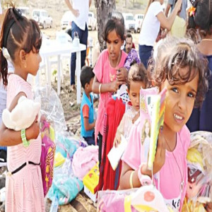 خليفة الانسانية ترسم البسمة على وجوه اطفال سقطرى بهدايا العيد
