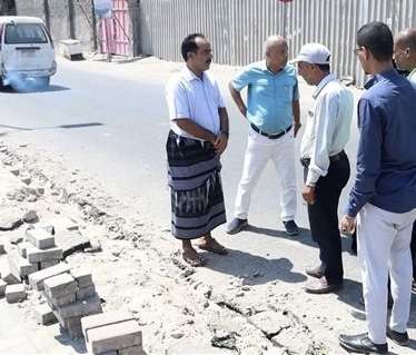 تفقد المدير العام لمديرية خورمكسر عواس الزهري، صباح اليوم، سير العمل في مشروع إعادة تأهيل جانب من بردورات الجزيرة الوسطية بشارع كورنيش ساحل أبين.