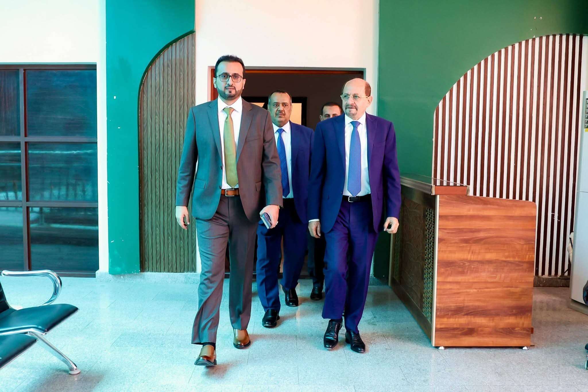 وخلال الزيارة، عقد رئيس الوزراء، اجتماعاً موسعاً، ضم وزير الخدمة المدنية والتأمينات سالم العولقي، وقيادات الوزارة، جرى خلاله مناقشة الخطط الاستراتيجية للوزارة، وملفات الإصلاح الإداري، وتصحيح الاختلالات في قاعدة بيانات موظفي الدولة.