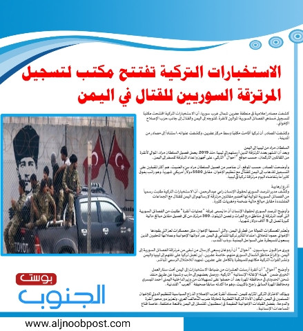 الاستخبارات التركية تفتتح مكتب لتسجيل المرتزقة السوريين للقتال في اليمن