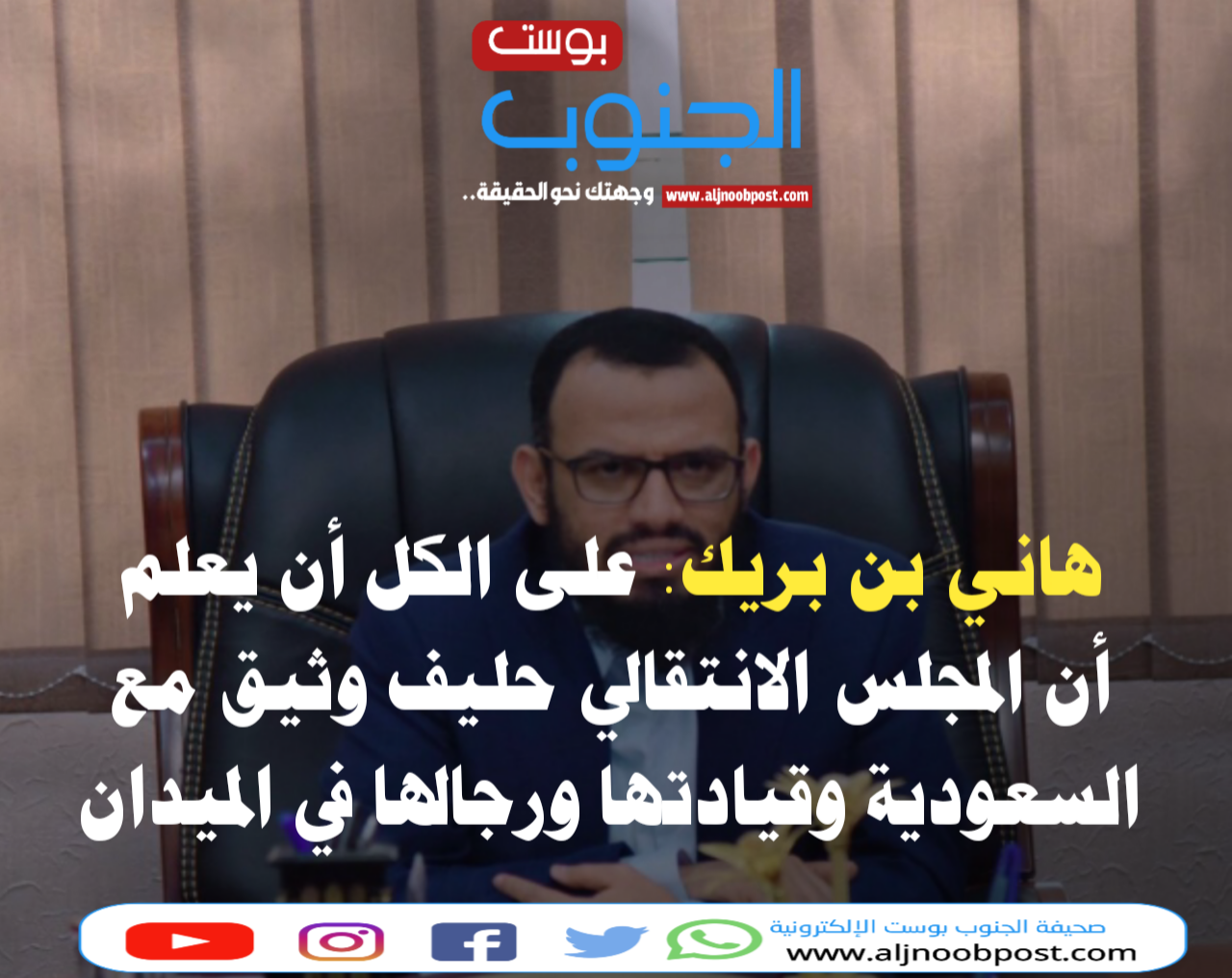 هاني بن بريك: المجلس الانتقالي حليف وثيق مع السعودية وقيادتها ورجالها في الميدان