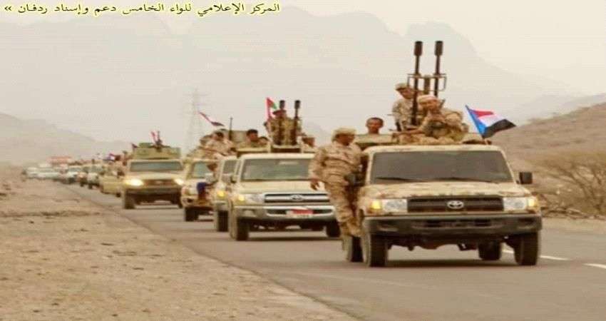 وتأتـي هذه التعزيزات العسكرية من اللواء الخامس دعم وإسناد عقب إعلان المجلس الانتقالي الجنوبي تعليق مشاركته في المشاورات الجارية لتنفيذ اتفاق الرياض وعدم التزام الطرف الآخر بوقف اطلاق النار وإستمرار مليشياته بالتحشيد العسكري تجاه الجنوب "
