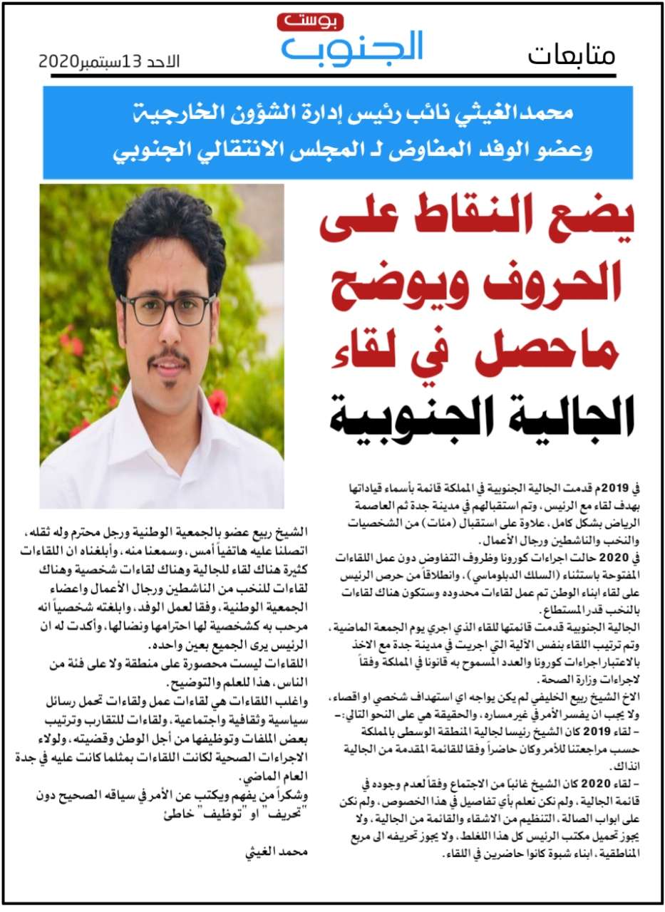 محمد الغيثي: ‏‎يضع النقاط على الحروف ويوضح ماحصل في لقاء الجالية الجنوبية