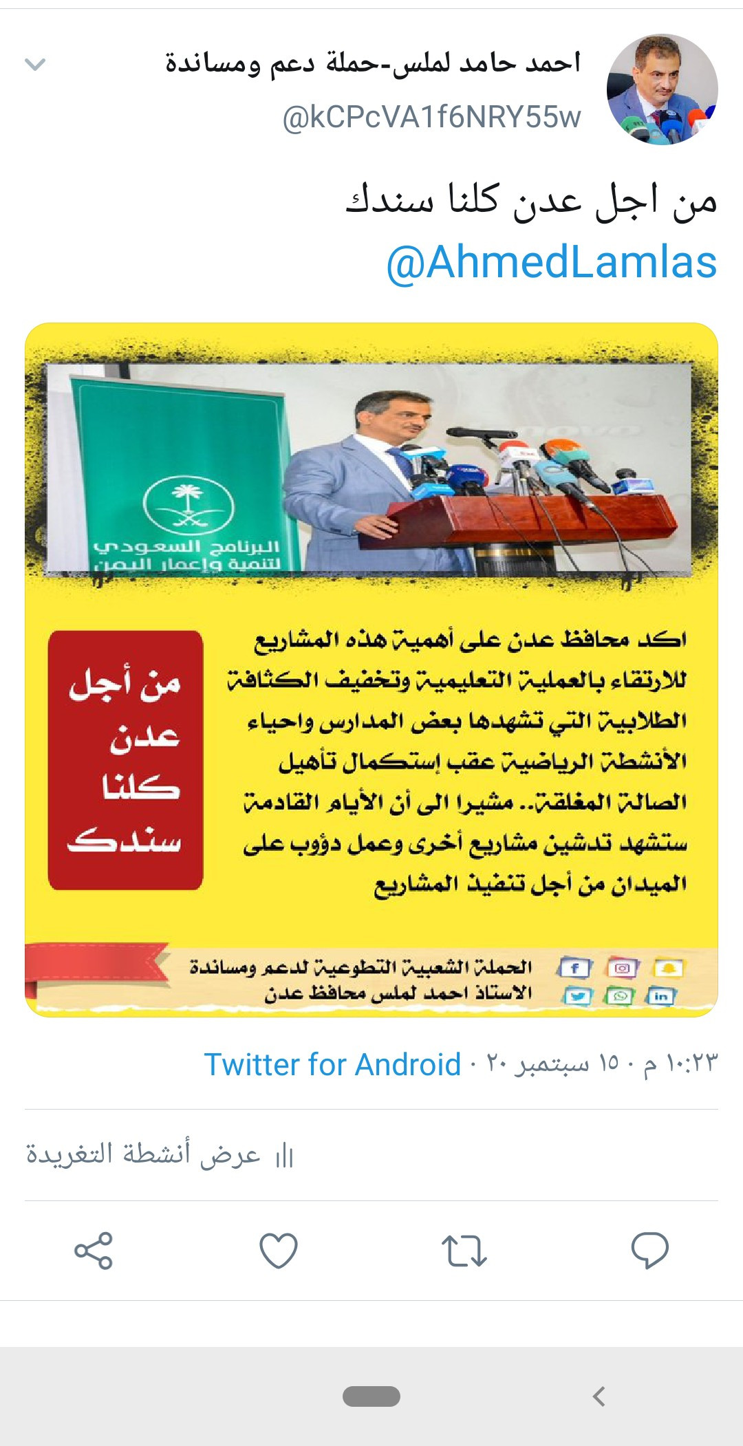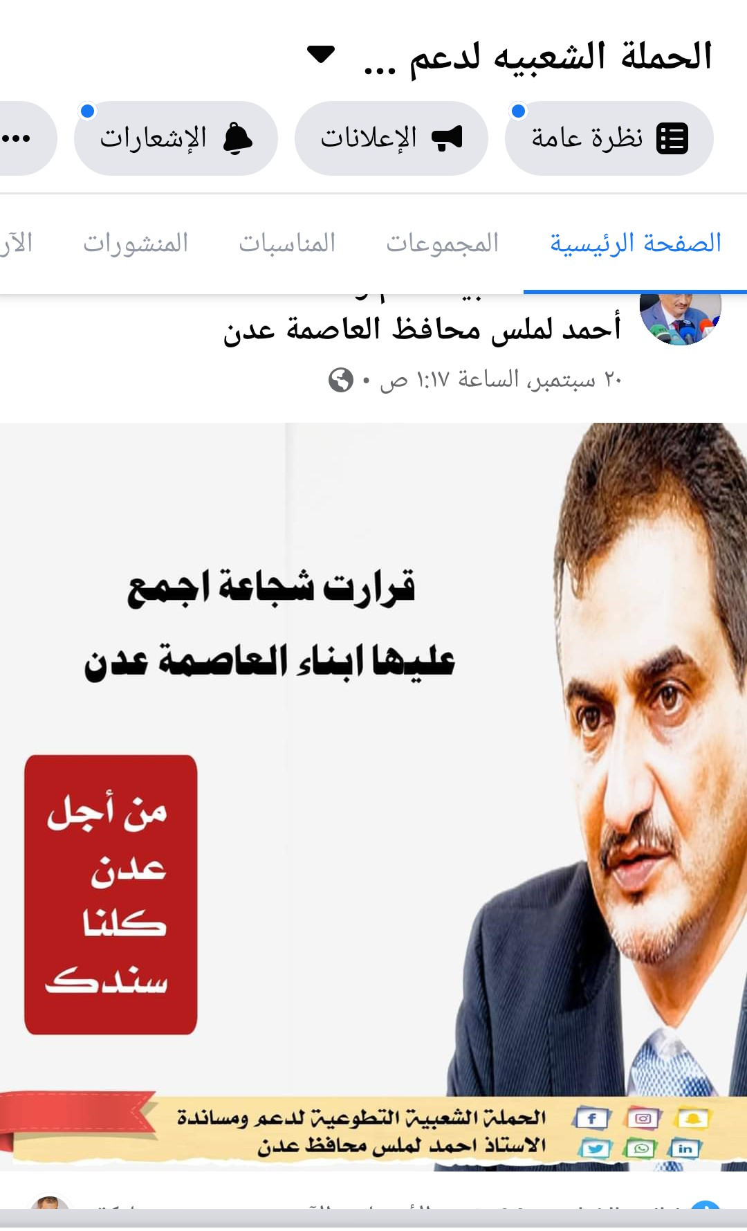 تواصلت الحملة الشعبيةالتطوعية لدعم ومساندة محافظ عدن الاستاذ احمد حامد لملس والتي انطلقت في 15 سبتمبر 2020 تحت شعار (من اجل عدن كلنا سندك)