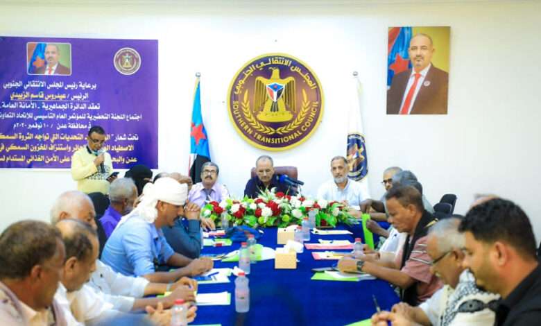 نظمت الدائرة الجماهيرية في الأمانة العامة لهيئة رئاسة المجلس الانتقالي الجنوبي، اليوم الثلاثاء، اجتماعا للجنة التحضيرية للمؤتمر العام التأسيسي للاتحاد التعاوني السمكي الجنوبي في العاصمة عدن.