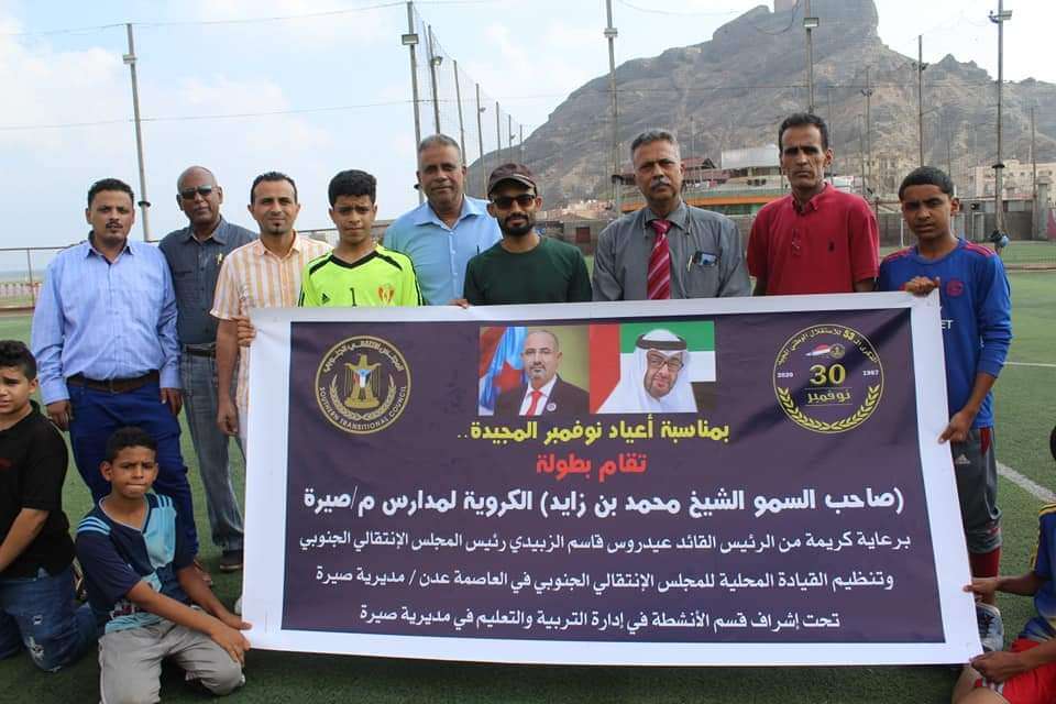انطلقت على ملعب فن سيتي بمديرية صيرة بالعاصمة عدن، صباح اليوم الاثنين، دوري صاحب السمو الشيخ محمد بن زايد آل نهيان لمدارس المديرية لكرة القدم، والذي يقام برعاية كريمة من الرئيس القائد عيدروس قاسم الزُبيدي رئيس المجلس الانتقالي احتفاءً بالذكرى الـ53 للاستقلال الوطني الـ30 من نوفمبر المجيد.