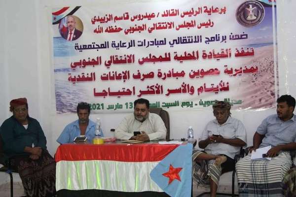 دشن رئيس الهيئة التنفيذية للقيادة المحلية للمجلس الانتقالي الجنوبي بمديرية حصوين بمحافظة المهرة الشيخ صالح الأسد، عصر يوم السبت، صرف إعانات نقدية لـ 68 يتيما ويتيمة والأسر الأكثر احتياجا، برعاية كريمة من الرئيس القائد عيدروس قاسم الزُبيدي رئيس المجلس الانتقالي، ضمن برنامج مبادرات الرعاية المجتمعية.