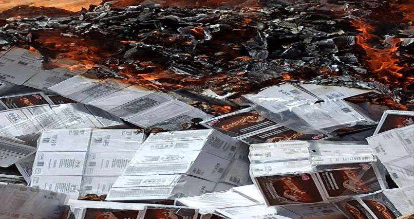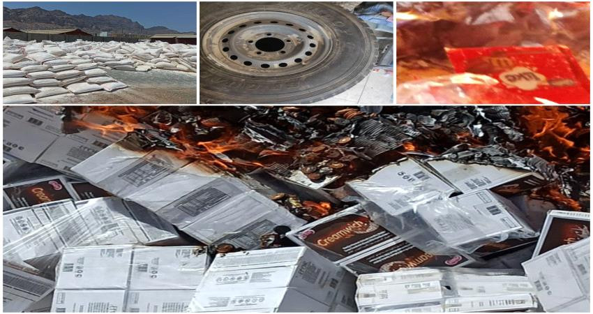 بالصور..إتلاف كميات منتجات مخالفة في ميناء المعلا والحرة ومنفذي الوديعة وشحن