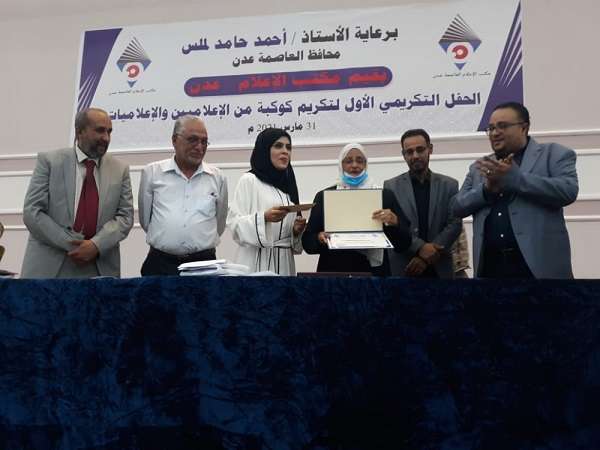 برعاية محافظ عدن لملس مكتب الاعلام بالعاصمة عدن يكرم كوكبة من الاعلاميين والاعلاميات لدورهم الوطني والريادي