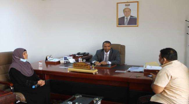 جاء ذلك خلال لقاءه صباح اليوم بمكتبه بالعاصمة المؤقتة عدن الدكتورة عائده حسين الصديق ضابط استشارية المشروع في مؤسسة ضوء.