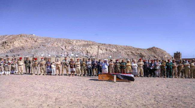 الخبجي وعدد من أعضاء هيئة الرئاسة وقيادات عسكرية وأمنية يؤدون صلاة الجنازة على جثمان فقيد الوطن العميد محمد جواس