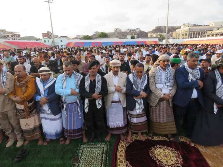 أدّى الرئيس القائد عيدروس قاسم الزُبيدي رئيس المجلس الانتقالي الجنوبي، القائد الأعلى للقوات المسلحة الجنوبية، اليوم الخميس، صلاة عيد الفطر المبارك مع جموع المصلين في ملعب الشهيد الحبيشي بمدينة كريتر بالعاصمة عدن.
